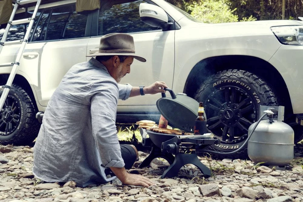 With the Dometic CPB101 portable gas BBQ, you can enjoy home cooking comforts in even the most remote locations. The CPB101 comes with a spacious cast iron cooking surface and high dome lid for cooking more of your favourite meats and vegetables at once. Achieve barbecuing perfection with the CPB101’s high heat output of 11.5 MJ/h and a built-in temperature gauge. The Dometic CPB101 is constructed from steel and is robust enough for off-road trips. Despite this, the CPB101 remains remarkably lightweight and easy to move around the campsite. Folding, removable side tables are included for a convenient place to set your ingredients, condiments and cooking utensils and folding legs allow you to position the BBQ off the table. Once you’ve finished cooking, the CPB101 is easy to clean so you can focus more time on exploring the great outdoors with your friends and family.