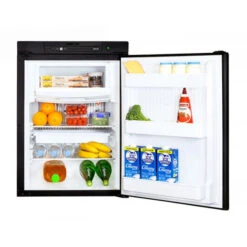 – Mounting flange included* – LED interior light in fridge – comes standard with black door panels – Optional AC/DC module available – Stainless steel panels are available as an option